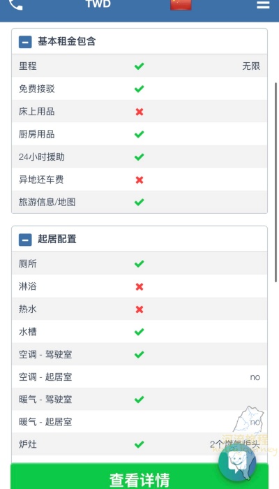 廚房設施具備完整的廚房設備及餐廳環境通常僅有「簡易」廚房無,須於車內(外)進行烹飪