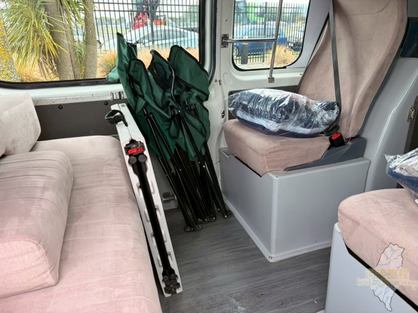 河流旅程本次所租賃之車輛為Lucky Rentals的Lucky Rover,是由2005~2008年的Toyota Hiace改裝而來,車內配置有「固定式馬桶」(固定於水槽下方)、水槽、空調(含暖氣)、燃氣爐灶及冰箱等,至於床位的部分則是包含了2張雙人床位(河流旅程僅使用一張雙人床位,而該張雙人床位以身高170公分的成年人來說,躺平時雙腳是可以完全伸直)。