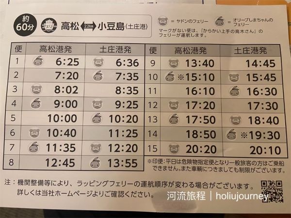 ◎土庄港(小豆島)─高松港渡輪上(方章)